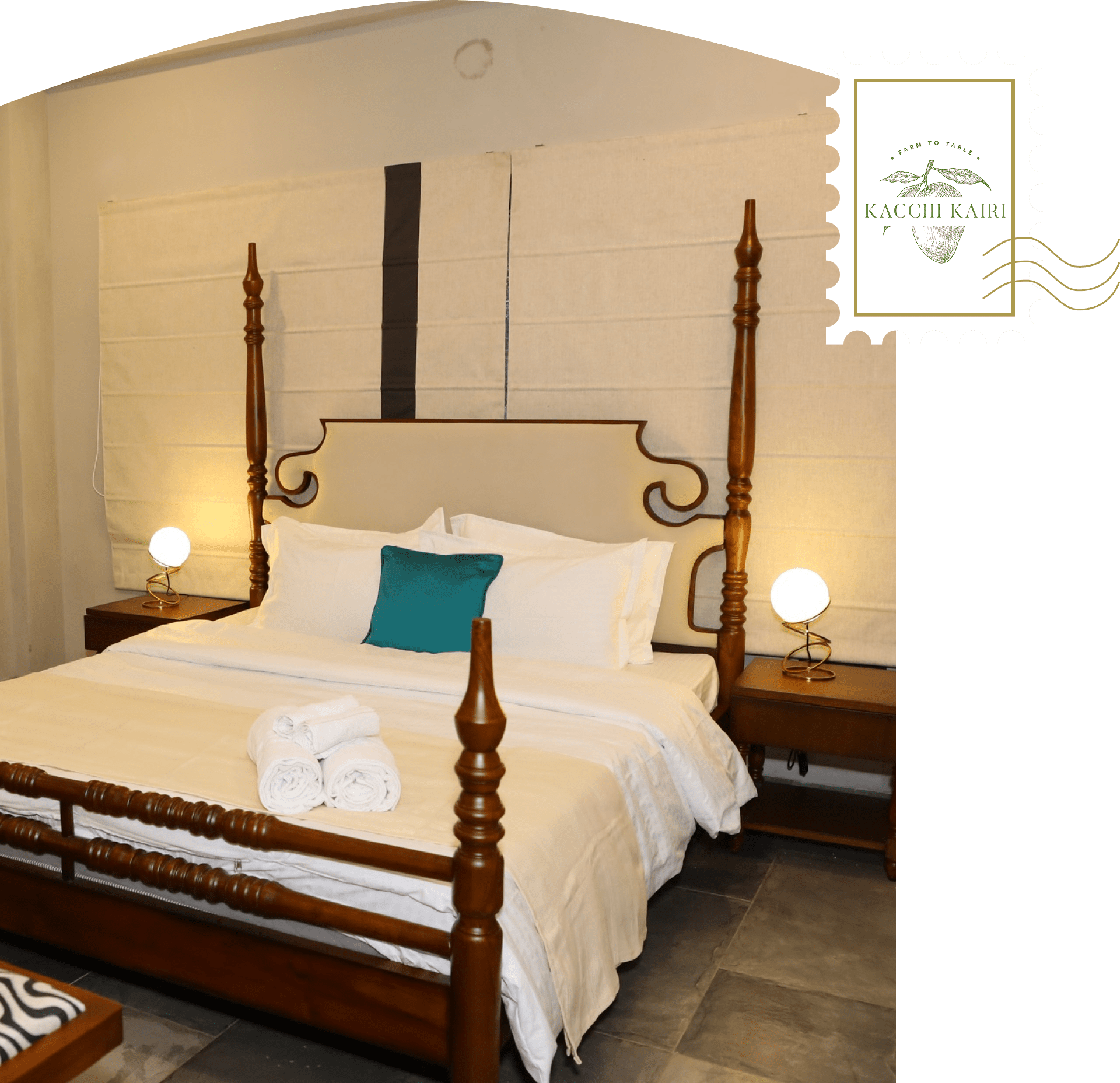Born from a desire to offer a space where life slows down, Kacchi Kairi Farmstay is the perfect harmony between nature and thoughtful design. Drawing inspiration from the very land it stands on, the place is a reflection of simplicity merged with the comfort and warmth of a home. The soft, natural elements woven into the space create a seamless blend of indoor and outdoor living, allowing you to immerse yourself in the surroundings.